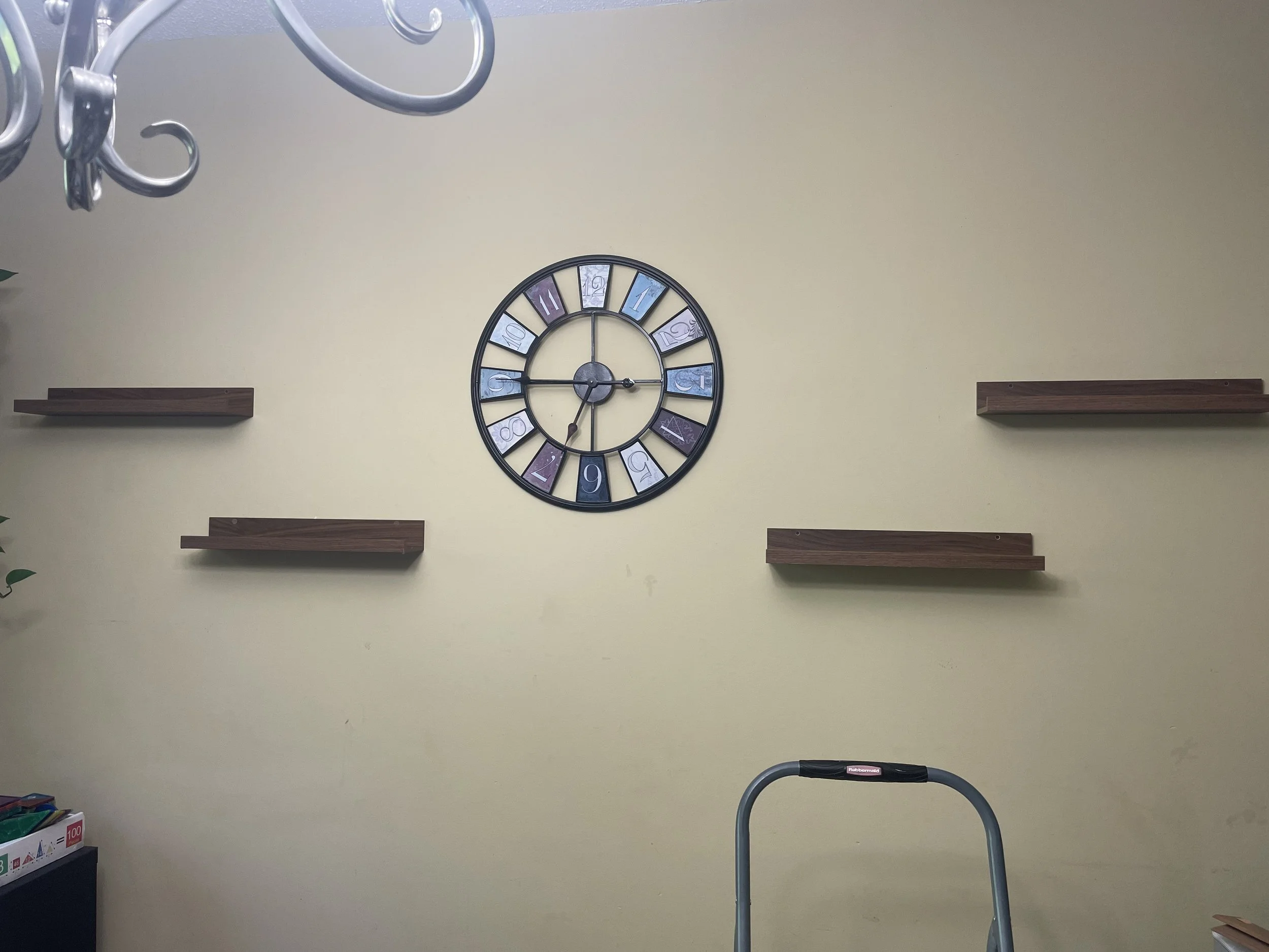Wall Clock and Floating Shelves Securely Hung Up